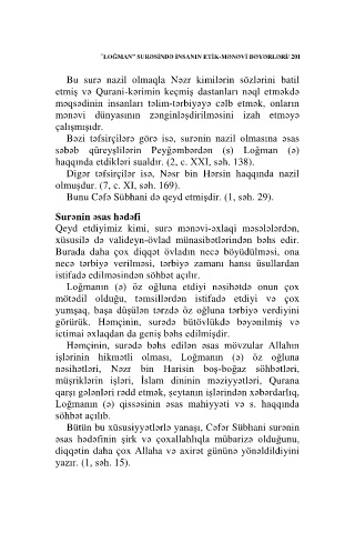 “LOĞMAN” SURƏSİNDƏ İNSANIN ETİK-MƏNƏVİ DƏYƏRLƏRİ/ 201