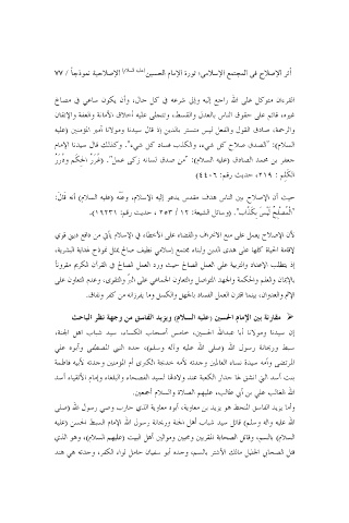77 اجذومن ةیح لاصلإا )ملاسلا هیلع( نیسحلا ماملإا ةروث ؛يملاسلإا عمتجملا يف حلاصلإا رثأ ً /