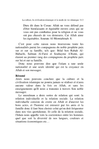 La culture, la civilisation islamique et la mode de vie islamique /113