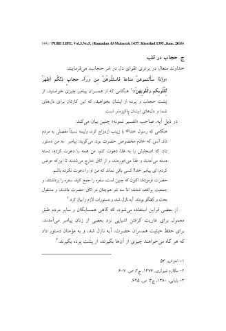 144 PURE LIFE, Vol.3.No.5, (Ramadan Al-Mubarak 1437. Khordad 1395. June. 2016)