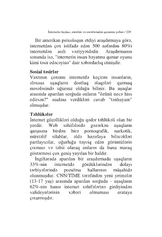 İnternetin faydası, zərərləri və zərərlərindən qorunma yolları / 229