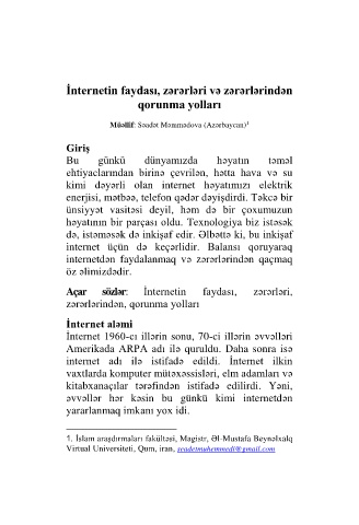 Açar sözlər: İnternetin faydası, zərərləri,