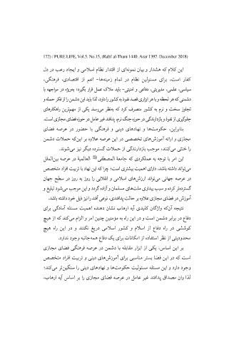 172 PURE LIFE, Vol.5. No.15, (Rabi' al-Thani 1440. Azar 1397. December 2018)