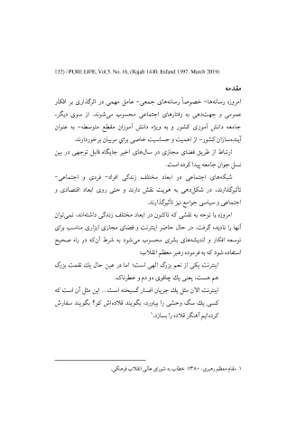 132  PURE LIFE, Vol.5. No. 16, (Rajab 1440. Esfand 1397. March 2019)