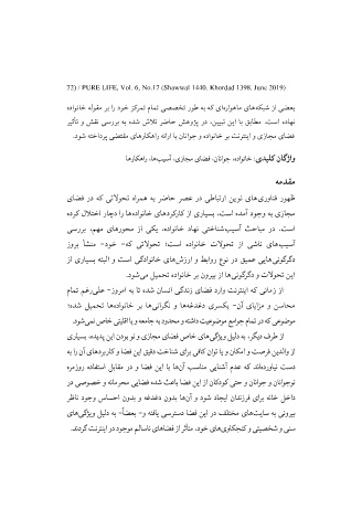 .دوش هتخادرپ یضتقم یاهراکهار هئارا اب ناناوج و هداوناخ رب تنرتنيا و یزاجم یاضف