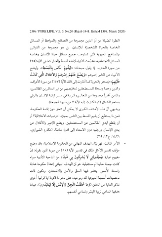 230 PURE LIFE, Vol. 6, No.20 (Rajab 1441. Esfand 1398. March 2020)