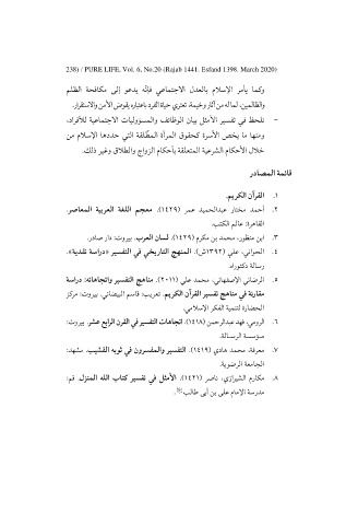 238 PURE LIFE, Vol. 6, No.20 (Rajab 1441. Esfand 1398. March 2020)