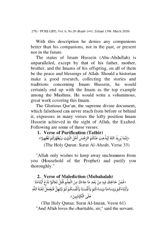 278 PURE LIFE, Vol. 6, No.20 (Rajab 1441. Esfand 1398. March 2020)