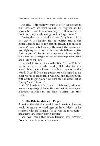 274 PURE LIFE, Vol. 6, No.20 (Rajab 1441. Esfand 1398. March 2020)