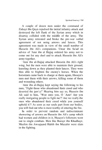 `Amr ibn al-Hajjaj attacked Hussein ibn Ali's right
