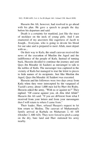 262 PURE LIFE, Vol. 6, No.20 (Rajab 1441. Esfand 1398. March 2020)