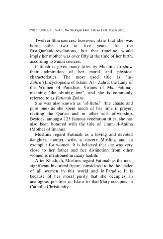 250 PURE LIFE, Vol. 6, No.20 (Rajab 1441. Esfand 1398. March 2020)