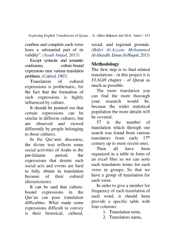 Exploring English Translations of Quran… H. Alimi Baktash and M.H. Amiri / 113