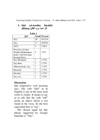 Exploring English Translations of Quran… H. Alimi Baktash and M.H. Amiri / 117