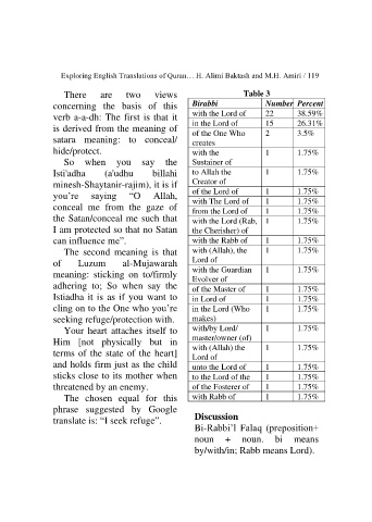 Exploring English Translations of Quran… H. Alimi Baktash and M.H. Amiri / 119
