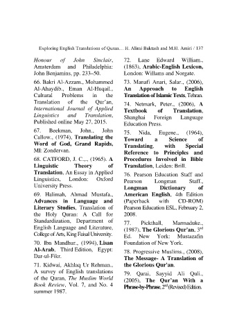 Exploring English Translations of Quran… H. Alimi Baktash and M.H. Amiri / 137