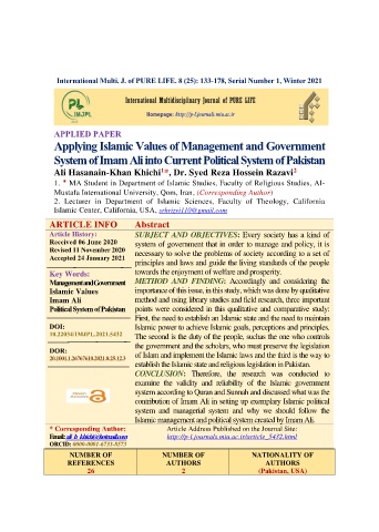 International Multi. J. of PURE LIFE. 8 (25): 133-178, Serial Number 1, Winter 2021