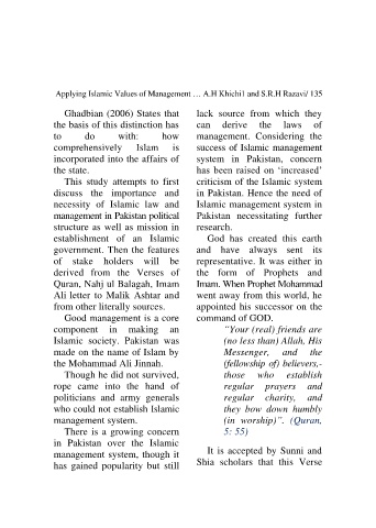Applying Islamic Values of Management … A.H Khichi1 and S.R.H Razavi/ 135