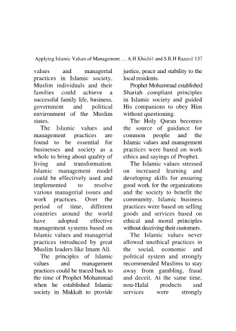 Applying Islamic Values of Management … A.H Khichi1 and S.R.H Razavi/ 137