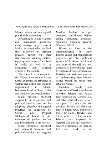 Applying Islamic Values of Management … A.H Khichi1 and S.R.H Razavi/ 139