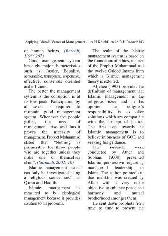 Applying Islamic Values of Management … A.H Khichi1 and S.R.H Razavi/ 143