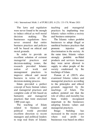 146 International Multi. J. of PURE LIFE. 8 (25): 133-178, Winter 2021