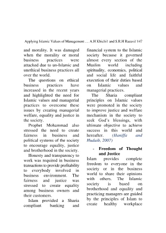 Applying Islamic Values of Management … A.H Khichi1 and S.R.H Razavi/ 147