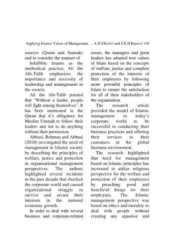 Applying Islamic Values of Management … A.H Khichi1 and S.R.H Razavi/ 149