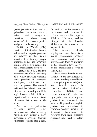 Applying Islamic Values of Management … A.H Khichi1 and S.R.H Razavi/ 153
