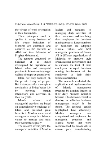 154 International Multi. J. of PURE LIFE. 8 (25): 133-178, Winter 2021