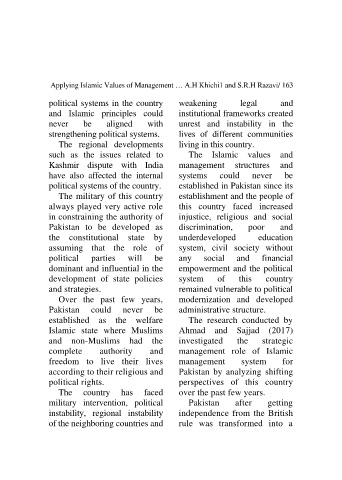 Applying Islamic Values of Management … A.H Khichi1 and S.R.H Razavi/ 163