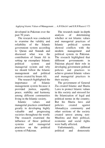 Applying Islamic Values of Management … A.H Khichi1 and S.R.H Razavi/ 173