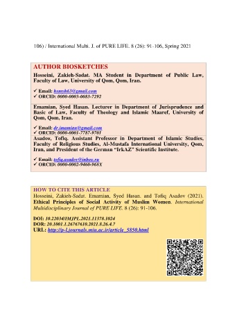 106 International Multi. J. of PURE LIFE. 8 (26): 91-106, Spring 2021