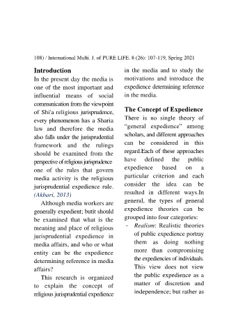 108 International Multi. J. of PURE LIFE. 8 (26): 107-119, Spring 2021