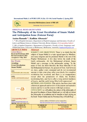 International Multi. J. of PURE LIFE. 8 (26): 121-144, Serial Number 2, Spring 2021