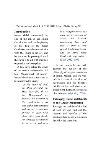 122 International Multi. J. of PURE LIFE. 8 (26): 121-144, Spring 2021