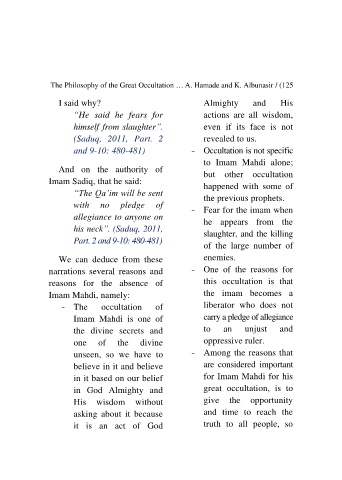The Philosophy of the Great Occultation … A. Hamade and K. Albunasir / (125