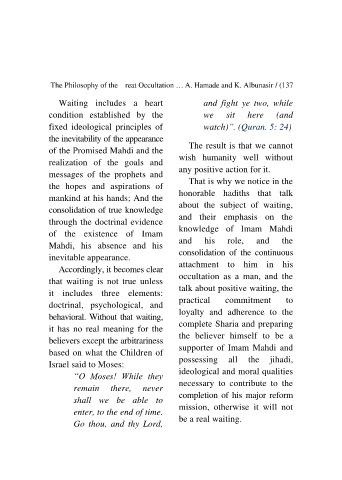 The Philosophy of the Great Occultation … A. Hamade and K. Albunasir / (137