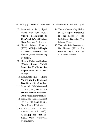 The Philosophy of the Great Occultation … A. Hamade and K. Albunasir / (143