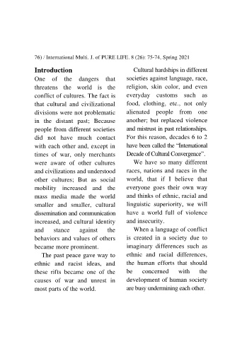 76 International Multi. J. of PURE LIFE. 8 (26): 75-74, Spring 2021