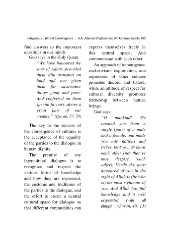 Indigenous Cultural Convergence … Kh. Ahmadi Bighash and M. Ghamarzadeh / (85