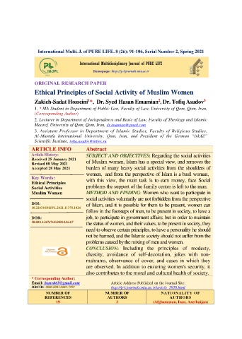 International Multi. J. of PURE LIFE. 8 (26): 91-106, Serial Number 2, Spring 2021