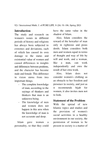92 International Multi. J. of PURE LIFE. 8 (26): 91-106, Spring 2021