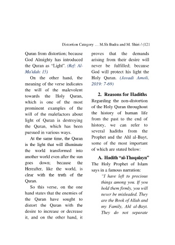 another world even after the sun A. Hadith “al-Thaqalayn”