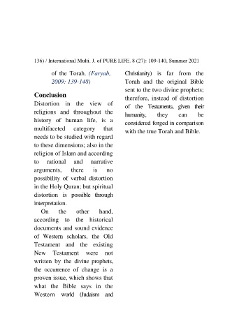 136 International Multi. J. of PURE LIFE. 8 (27): 109-140, Summer 2021