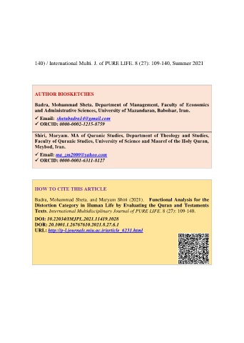 140 International Multi. J. of PURE LIFE. 8 (27): 109-140, Summer 2021