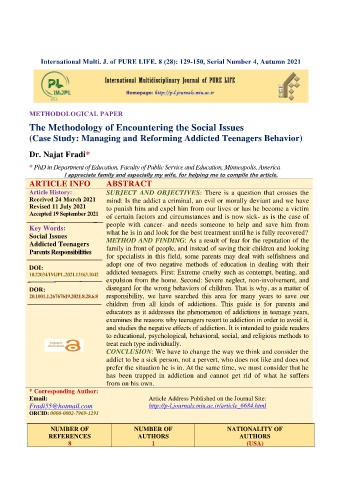 International Multi. J. of PURE LIFE. 8 (28): 129-150, Serial Number 4, Autumn 2021
