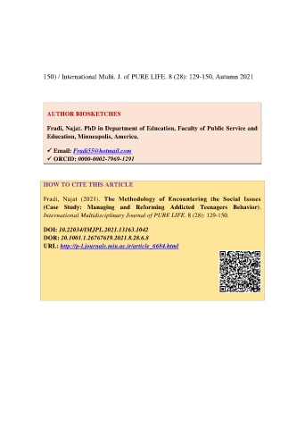 150 International Multi. J. of PURE LIFE. 8 (28): 129-150, Autumn 2021