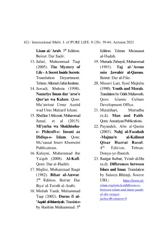 62 International Multi. J. of PURE LIFE. 8 (28): 39-64, Autumn 2021