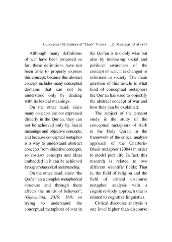 Conceptual Metaphors of “Harb” Verses … Z. Mirsepasi et al / (67